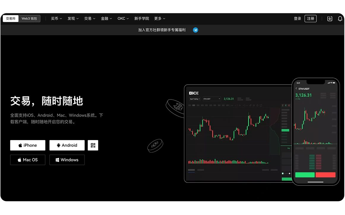 点击网站右上角下载图标,用手机浏览器扫描出现的二维码或点击“注册”按钮,进入欧易中国地区官网账号注册界面,需要先注册账号,然后根据提示完成下载、安装。APP下载安装教程请参考《欧易安卓、ios手机 App下...